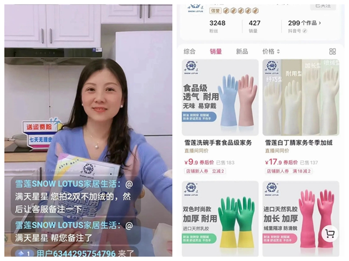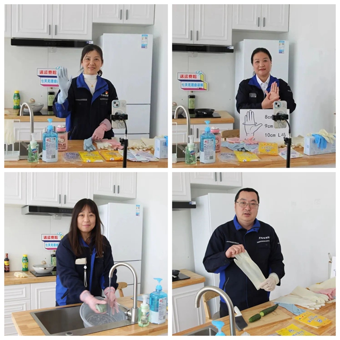 从绿幕直播间搬到了充满生活气息的“厨房”,在新的场景中,华腾橡塑公司手套产品的性能,更好、更直观地展示给了消费者。