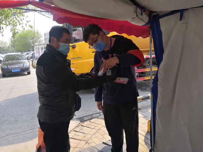 还有一件事我很骄傲。在工作中,我发现工作人员检查证件时全都集中在卡口前,再加上村口人员嘈杂,使检查工作既降低了效率,又容易造成人员聚集,于是我提议,检查证件和测量体温这两项工作分别由两位同事进行,在卡口处检查证件,进入帐篷后由另一位同事对村民们进行体温测量,这样做提高了人员通过效率,也避免了村口人员聚集。