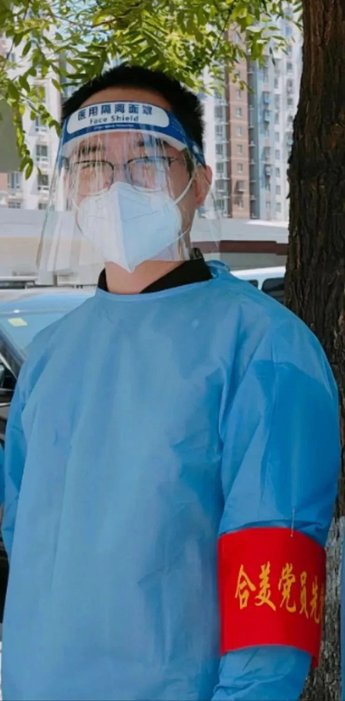 共产党员张馨羽参加丰台区西马小区社区进行核酸检测队伍疏导或信息录入工作。