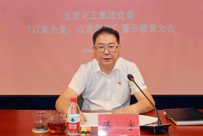 为深入学习习近平总书记关于全面加强党的纪律建设的重要论述,传达学习市委、市国资委党委警示教育大会精神,按照上级党委关于党纪学习教育的部署要求,深刻剖析存在的问题和典型案例,7月31日,北京化工集团党委召开“以案为鉴、以案促改”警示教育大会,党委书记、董事长陈宇作警示教育。