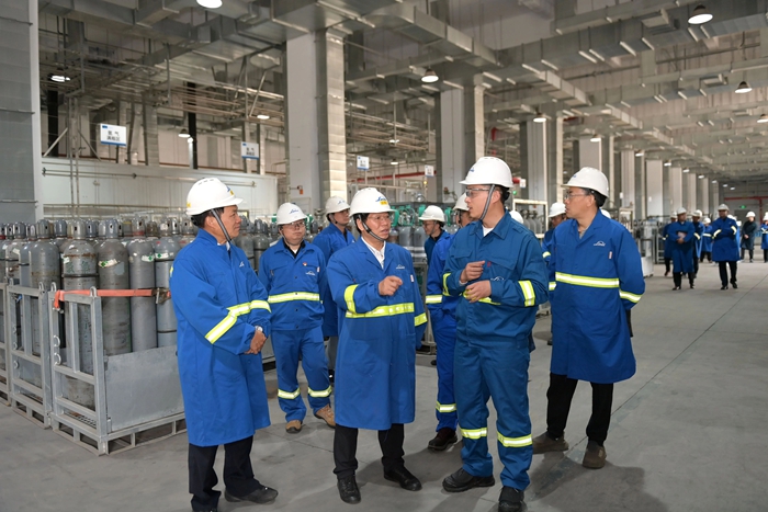 随后,蔡毅德一行还参观了包装气工厂。参观后双方表示,要加强共建联建,共同筑牢战斗堡垒作用,以高质量党建推动高质量发展,为能源化学地质工会更好服务企业,为企业更好弘扬劳模精神、劳动精神、工匠精神搭建起共建平台。
