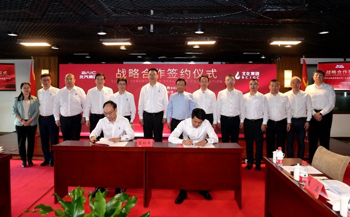 9月24日上午,北京化工集团与北汽集团战略合作协议签约仪式在北京化工集团总部举行。北京化工集团党委书记、董事长陈宇,党委副书记、董事、总经理杨旭辉;北汽集团党委书记、董事长张建勇出席签约仪式。北京化工集团副总经理张荣寰,北汽集团党委常委、副总经理胡汉军代表双方签署协议。