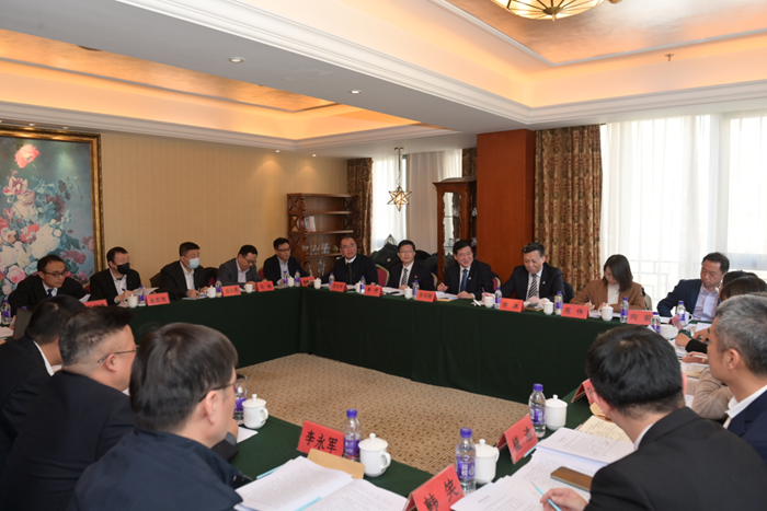北化生科总经理申海成,化研院党总支书记、董事长杨传忠,华腾拓展党总支书记、董事长李泳,北搪公司党委书记、董事长周金阳作交流发言。