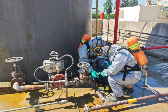 在理论知识培训中,集团安全环保部相关人员围绕人民防空的基本概念、性质、地位、作用和工作任务进行了系统深入的讲解。在应急装备讲解示范和实操中,由安全应急专业人员细致讲解了正压式空气呼吸器、轻(重)型化学品防护服、洗消装备、过滤式防毒面具等应急装备的使用场景、注意事项。