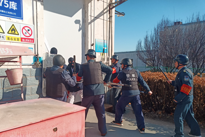 华腾科技园作为全市应急物资、化工产品重要集散地,全国两会前夕,华腾化工从安全保卫、安全管理、信访稳定等多个方面进行了全面部署和系统摸排。领导班子成员带头到重点部位安全检查;组织公司中控室人员进行“周界防侵入系统”等专业培训;对易制爆库房进行封闭管理并张贴封条,联合属地派出所组织开展甲类库反恐应急演练;认真落实集团信访维稳、接诉即办相关工作要求,切实将安全保稳定工作落实落地。
